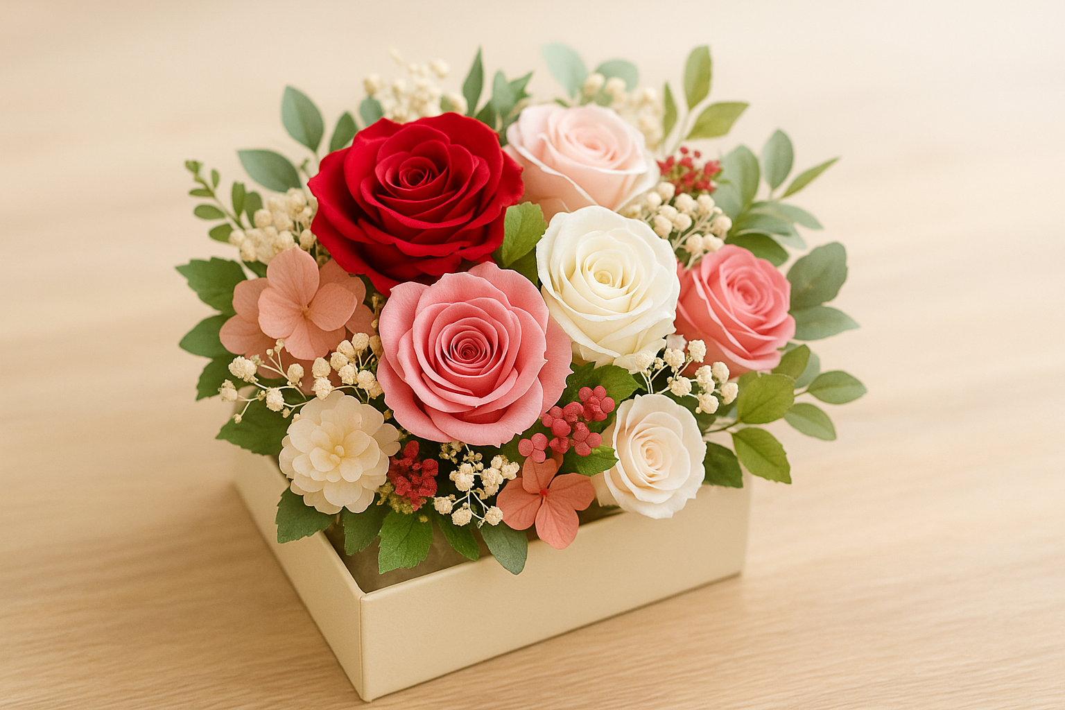 プリザーブドフラワーは、生花のような美しさを長く保つことができるため、大切な人への贈り物として最適です。この記事では、プリザーブドフラワーの種類や選び方、お祝いごと別のおすすめアレンジメント、DIYに挑戦するための基礎知識、そしてお手入れ方法まで、詳しく解説しました。 贈る相手やシーンに合わせた色やデザイン、メッセージ性を考慮し、心を込めた贈り物を選びましょう。 この記事が、大切な人への最高のプレゼント選びのお手伝いになれば幸いです。 プリザーブドフラワーで、忘れられない素敵な思い出を共に分かち合いましょう。